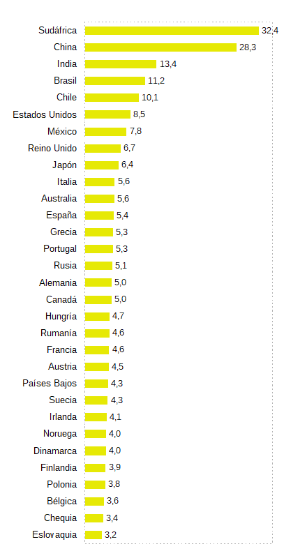 La OCDE ha publicado los ratios interdéciles S80/S20 para el año 2023: