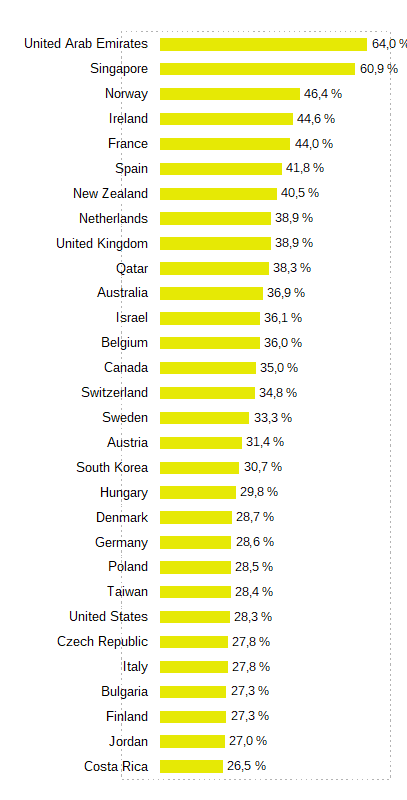 Les Emirats Arabes Unis et Singapour se détachent nettement, avec respectivement 64 % et 60,9 %.