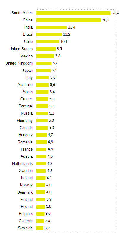 The ratio between the average income of the richest 20% and that of the poorest 20% (the S80/S20 ratio) is a useful indicator of inequality-reducing mechanisms.
